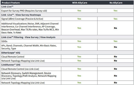 Nur Mitglieder mit aktivem AllyCare-Support profitieren von den zusätzlichen Vorteilen der AllyCare-fähigen Funktionen, die Ihren NetAlly-Produkten erweiterte Test- und Analysefunktionen bieten.